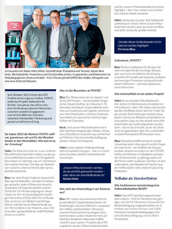 Artikel über unsere Kaffeerösterei PONTE im INSIDER KREFELD erschienen